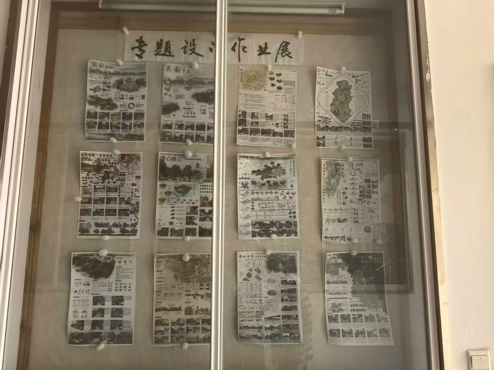 11月21日,艺术设计学院2022级环境设计专业“乡村景观设计专题作业展”在艺术楼二楼展窗进行集中展示。