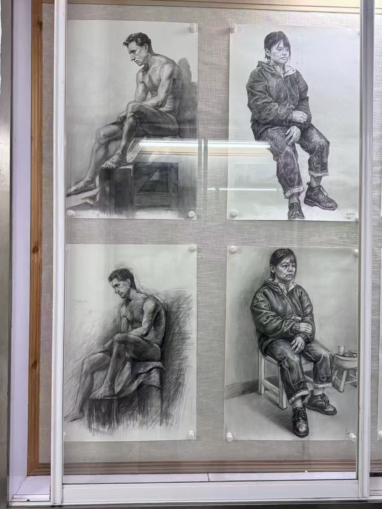 2025年12月2日,艺术设计学院2024级美术学专业1、2班学生,在艺术楼二楼展窗进行集中作业展示。此次展出两个班的《素描半身像》、《素描全身像》结课作业,展出时间一周。