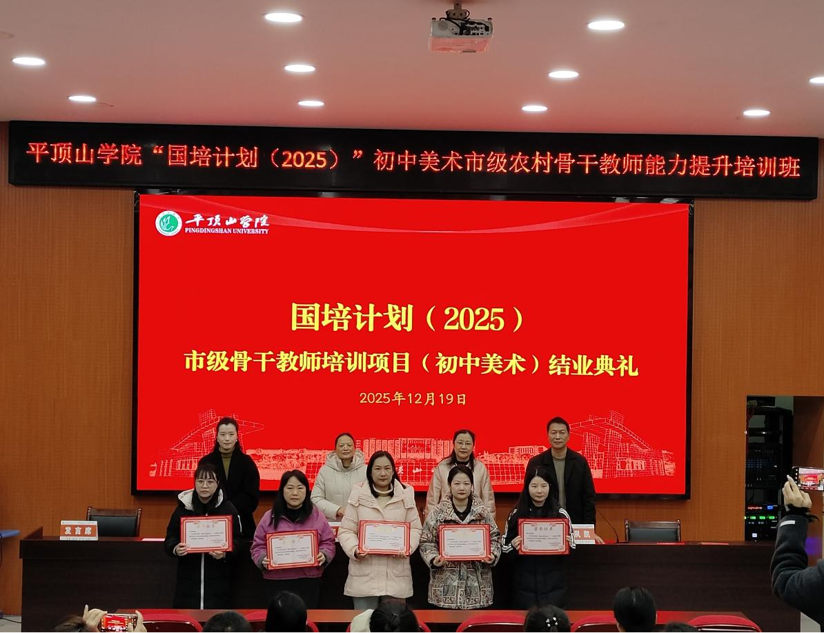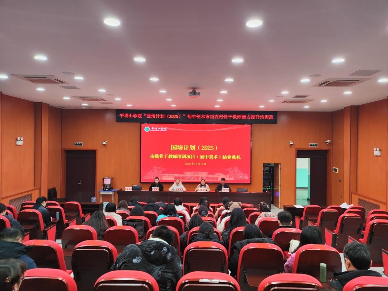 12月19日上午,“国培计划(2025)”——市级骨干教师(初中美术)培训项目结业典礼在平顶山学院崇文校区教学楼C004教室隆重举行。平顶山学院艺术设计学院院长盖伟、副院长刘夙凯、培训班主任及全体参训教师齐聚一堂,共同见证十余天系统学习、深度研讨与实践研修的成果落地,所有参训教师圆满完成培训任务,顺利结业。
