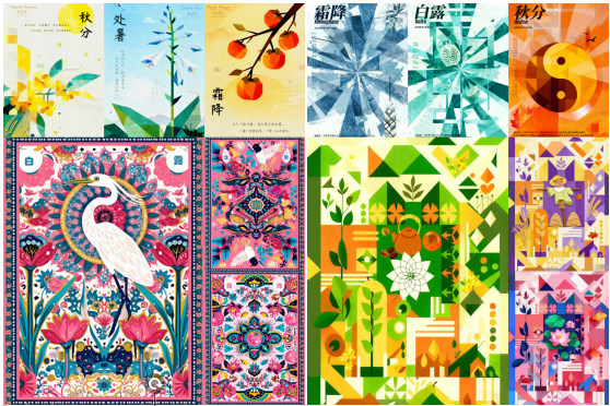 作品题材丰富多元,涵盖民俗文化、城市印象、情感表达等多个领域;创作形式灵活多样,既有传统手绘插画的细腻质感,也有数字绘画的鲜明张力,充分展现了学生们扎实的专业功底和丰富的想象力。其中,多件作品呈现出传统文化与现代设计的融合创新特质。例如:《非遗·二十四节气》主题方向,以精准的视觉语言重构传统民俗符号,成为课程文化育人目标的典型实践成果。