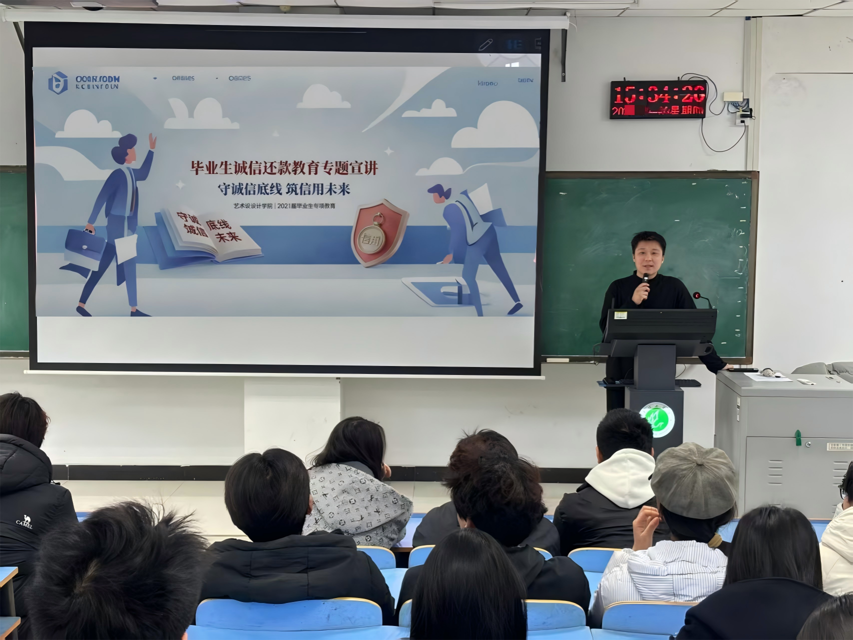 为助力学生资助事业持续健康发展,进一步加深毕业生助学贷款政策掌握度、筑牢诚信还款思想根基,5月16日,艺术设计学院于图书馆L401教室举办毕业生诚信还款教育宣讲活动。本次活动由宋坤宇主持及全体申请助学贷款毕业生参与。