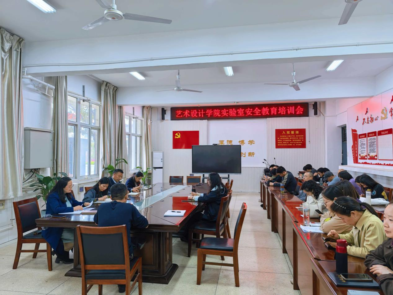 2026年4月2日下午,艺术设计学院在艺术楼A118举办实验室安全教育培训。学院党委书记张洪辉、院长盖伟、副书记任高举、副院长郑冬冬、郑瑞利等班子成员及全体教职工参加培训。本次培训由郑瑞利副院长主讲,围绕三个方面展开:一是强调“实验室安全无小事”;二是要求实验教师进入实验室后守底线、作表率;三是详细讲解具体操作规范。
